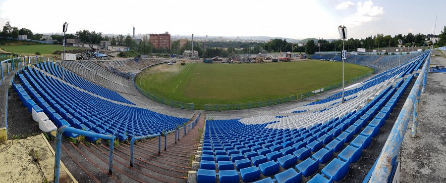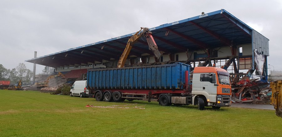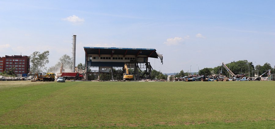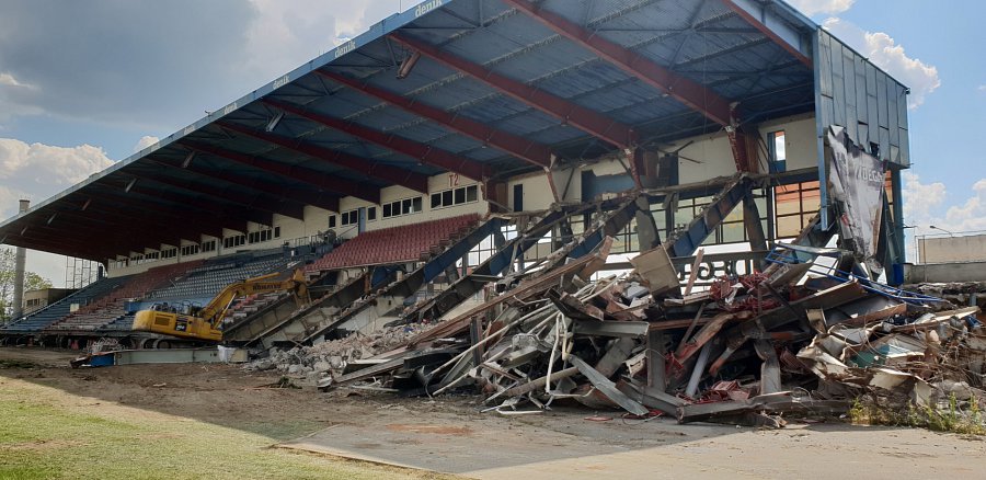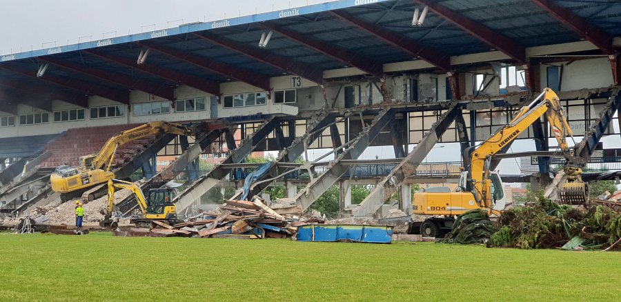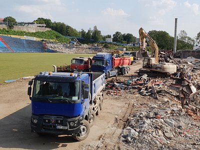 Po sedmi dnech demoličních prací je stadion na ostravských Bazalech bez hlavní tribuny.