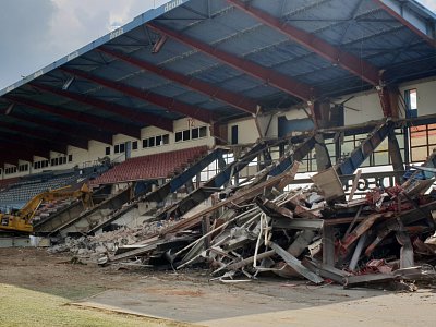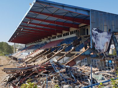 Jak demolice hlavní tribuny probíhala, se můžete podívat na přiložených fotografiích: