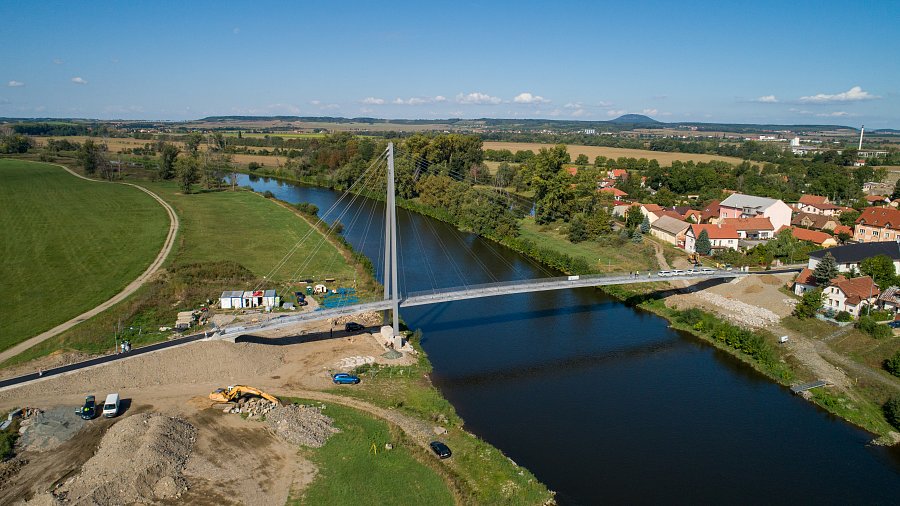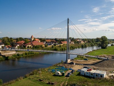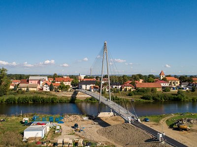 Paralelně s betonáží probíhá ve výrobně našeho subdodavatele výroba ocelového pylonu výšky 40 m, který bude příští měsíc na stavbě vztyčen. Po té bude zahájena montáž vyrobených segmentů mostovky.