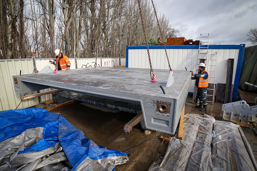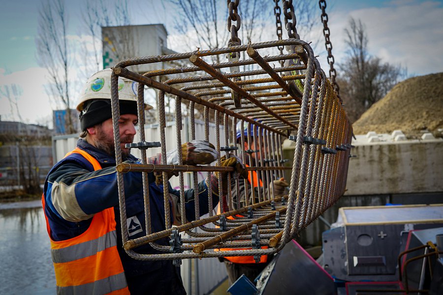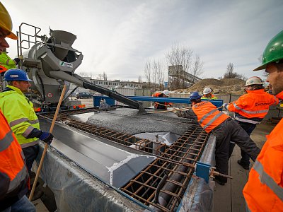Práce na výstavbě lávky v Lužci nad Vltavou se přesunuly do Prahy na Rohanský ostrov, kde třikrát týdně probíhá betonáž segmentů z ultravysokohodnotného betonu (UHPC). Tento speciální beton, má tlakovou pevnost 130 MPa, je samozhutnitelný a má zvláštní medovitou konzistenci.
