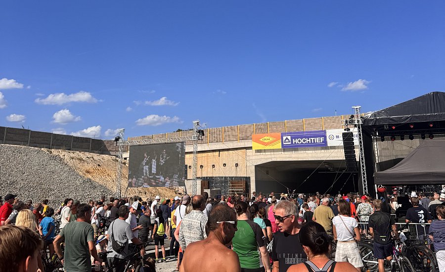 Na místo dorazil nejen ředitel ŘSD Radek Mátl či ministr dopravy Martin Kupka, ale na našem stánku se zastavila i celá řada našich kolegů a kolegyň, kteří se přišli podívat na tuto náročnou, ale významnou stavbu. Vše pak odpoledne vyvrcholilo koncertem zpěváka Richarda Müllera, který během přibližně hodinu a čtvrt trvajícího koncertu před portálem tunelu Pohůrka zahrál své největší hity.