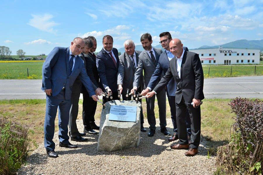 Včerejším slavnostním poklepáním základního kamene započala rekonstrukce patnácti kilometrového úseku betonové silnice I/65 Turčianske Teplice – Príbovce. (okres Martin).