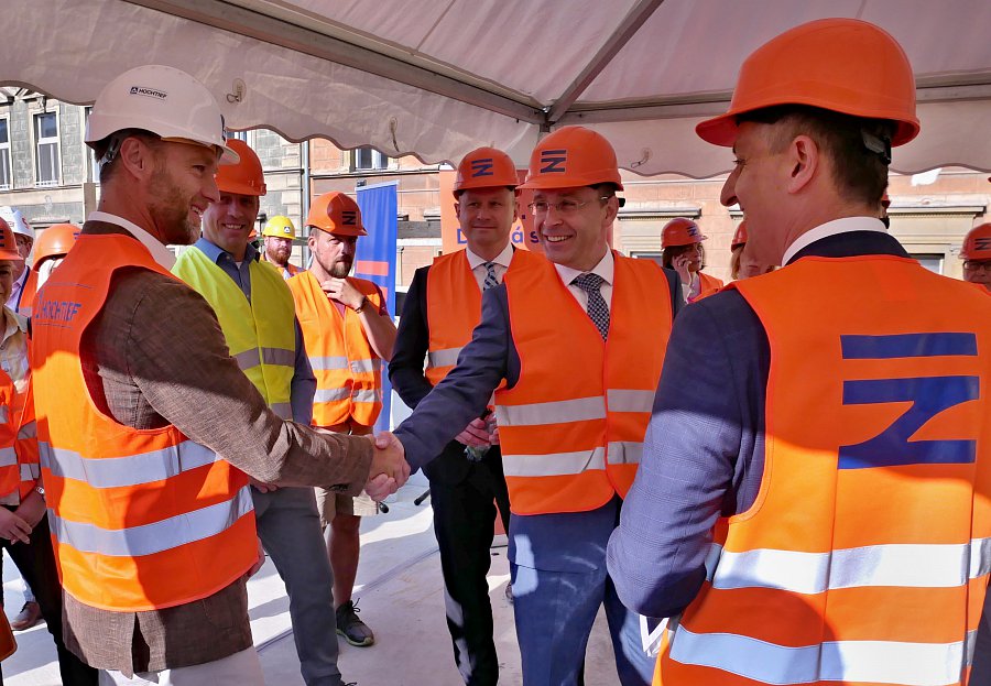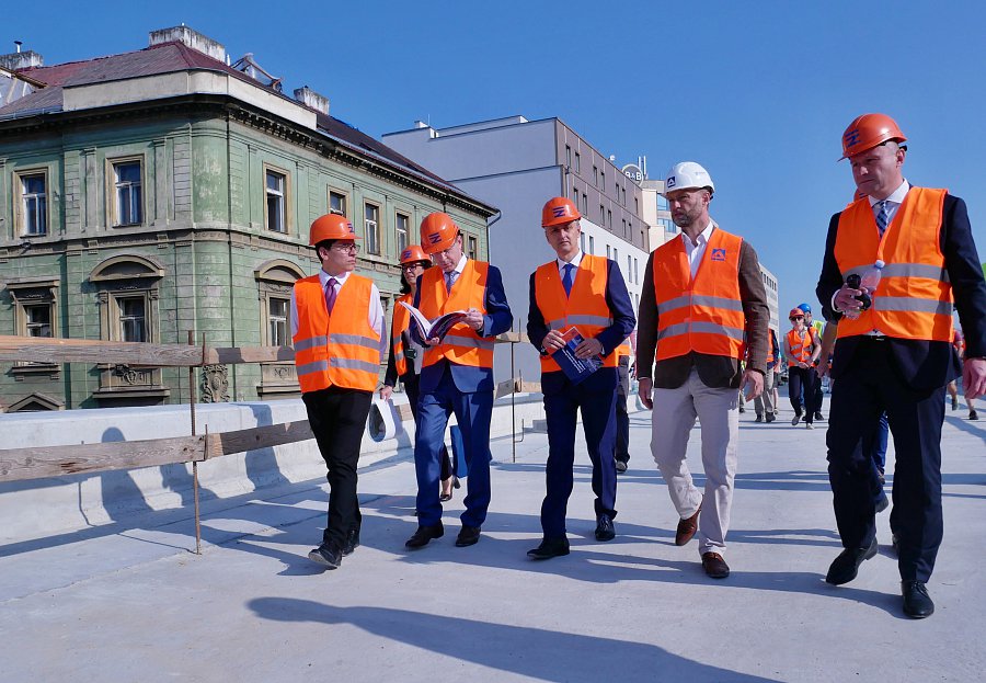 Staveniště v ulici Prvního pluku si 5. června prohlédl ministr dopravy Vladimír Kremlík v doprovodu generálního ředitele SŽDC Jiřího Svobody a našeho předsedy představenstva Tomáše Korandy.