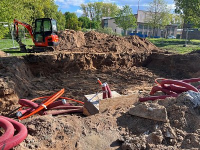 V prvotní fázi provádíme zemní a betonářské práce pod budoucí dobíjecí stojany, dále připravujeme základ pod zbrusu novou trafostanici, která už je zadaná do výroby. Po dokončení přípravných prací naši kolegové ze střediska Elektro provedou veškeré elektroinstalace a po osazení trafostanice nás bude čekat finiš v podobě vybudování potřebných parkovacích míst včetně instalace dopravního značení. Až budou naše práce dokončeny a ČEZ Distribuce stanici zapojí, tak se tato lokalita s dobíjecím výkonem 3 x 300kW zařadí k absolutní špičce z pohledu rychlosti dobíjení – zcela srovnatelnou s vysokým standardem Německa či skandinávských zemí.