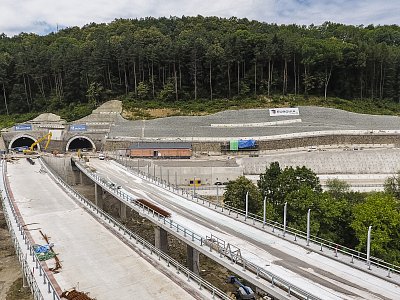 Tímto jsou proraženy oba - severní a jižní tunely na západ od středové jámy. Od zahájení ražeb z 2/2015 do 9/2015 bylo vyraženo 3100m. Momentálně probíhá ražba ze středního portálu směrem na východ a koncem týdne bude zahájena ražba z východního portálu směrem na střední portál. Zbývá vyrazit v kalotách cca 1300m z celkových 4400m.