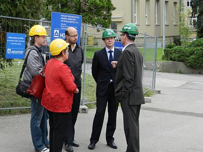 Ačkoli do dokončení nového pavilonu zbývá ještě přibližně devět měsíců, stavba již nyní přitahuje pozornost veřejnosti i státní správy. Návštěvu impozantní rozestavěné budovy, jejímž dominantním prvkem je střešní heliport, si proto nenechali ujít ani zástupci města.