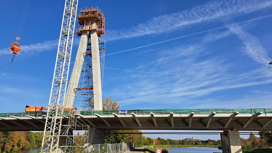V druhé polovině listopadu jsme dokončili pylon na nejdelším zavěšeném mostě v České republice.