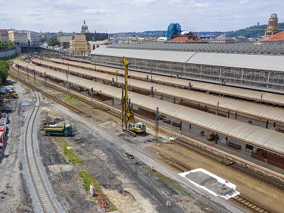 Zakázka na prodloužení podchodů na pražském Hlavním nádraží se rozběhla naplno. K dnešnímu dni byla provedena přeložka koleje autovlaku a zahájena realizace záporového pažení pro samotnou jámu podchodu.