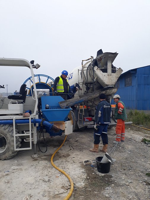 Nedílnou součástí naší společnosti je kromě obchodní také vědecká činnost, díky které se významně podílíme na rozvoji oboru stavebnictví v České republice i ve světě. Koncem října minulého roku jsme v areálu závodu v Plané nad Lužnicí testovali inovovaný stříkaný beton, ve kterém došlo k významné náhradě cementu jiným vápeno-síranovým pojivem na bázi popílku. Hlavní výhodou nového betonu je, že výrobní náklady alternativního pojiva jsou přibližně poloviční a lze jím nahradit významný podíl cementu (až 100%). Alternativní pojivo vyrábí zatím prototypně ČEZ Energetické produkty s.r.o.