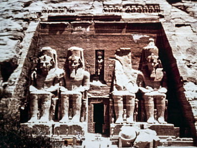 Faraon Ramses II (1300-1233 př. n. l.) postavil dva chrámy v pohoří umístěném přímo u Nilu. Sloužily k provozování kultu významných egyptských bohů, ale i samotného krále a jeho oblíbené manželky královny Nefertari. Průčelí chrámů tvoří kolosální postavy Ramsese II., které jsou 20 metrů vysoké. Přesun komplexu stál 42 milionů dolarů. Přemístění trvalo od března 1964 do září 1968.