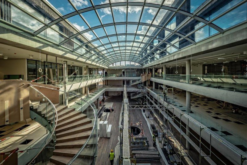 Na rozdíl od staré budovy nejsou v novém sídle vodní plochy, zato se zde bude nacházet dostatek vnitřní zeleně. Kancelářské prostory zahrnují jak open space, tak i uzavřené místnosti.