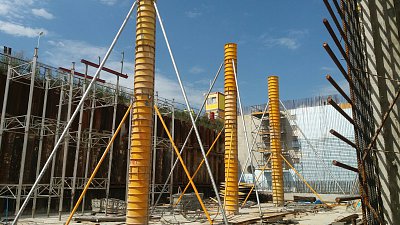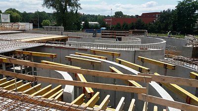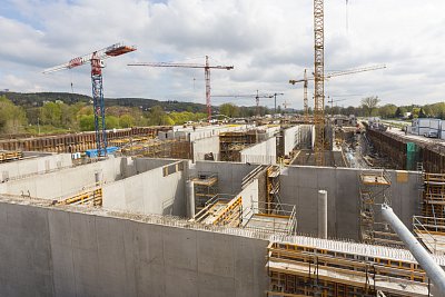 V současnosti zde po dokončení zemních prací, kdy po dobu téměř čtyř měsíců odjíždělo ze stavby každých pět minut auto se zeminou, pracuje usilovně pod pěti jeřáby téměř 150 tesařů, železářů a betonářů na železobetonové monolitické konstrukci. Týdně zpracují přibližně 180 autodomíchávačů betonové směsi a 130 tun výztuže.