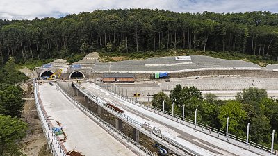 Na podzim bude dokončen dosud největší projekt naší společnosti na Slovensku – tunel Považský Chlmec, který je součástí obchvatu Žiliny na dálnici D3. Tunel má délku 2 218 metrů a tvoří ho dva tubusy. Na jeho vyražení se podílelo 35 strojů a v jednu chvíli na projektu pracovalo až 240 dělníků.