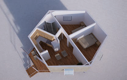 Šestihranné domy lze kombinovat různými způsoby i snadno rozšířit do vícečlenných či větších budov. Stavba je realizována s pomocí jednoduchého modulárního systému. Zjednodušený proces výstavby zajištěný z velké části prefabrikáty přináší výraznou úsporu nákladů při dodržení maximální kvality. Modulární konstrukce má dřevěný rám, montáž i demontáž je tak možné uskutečnit pomocí jediného nástroje.